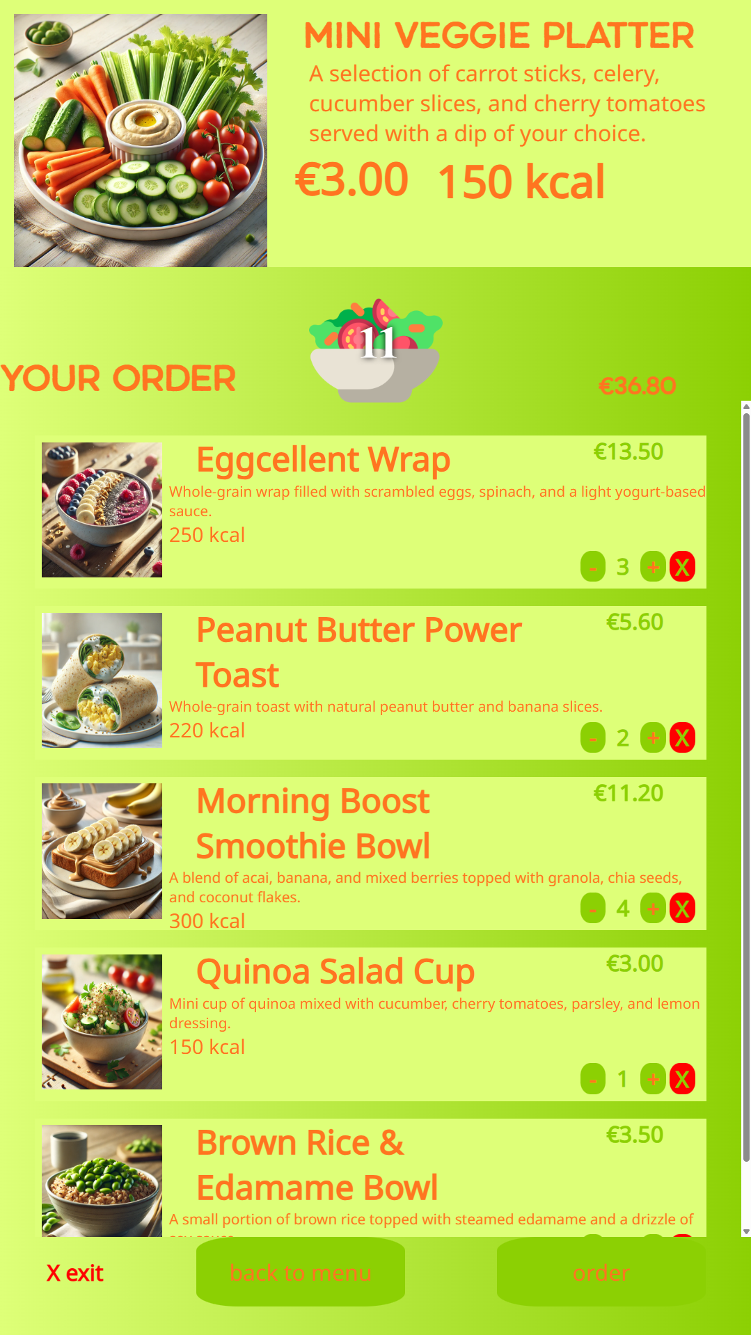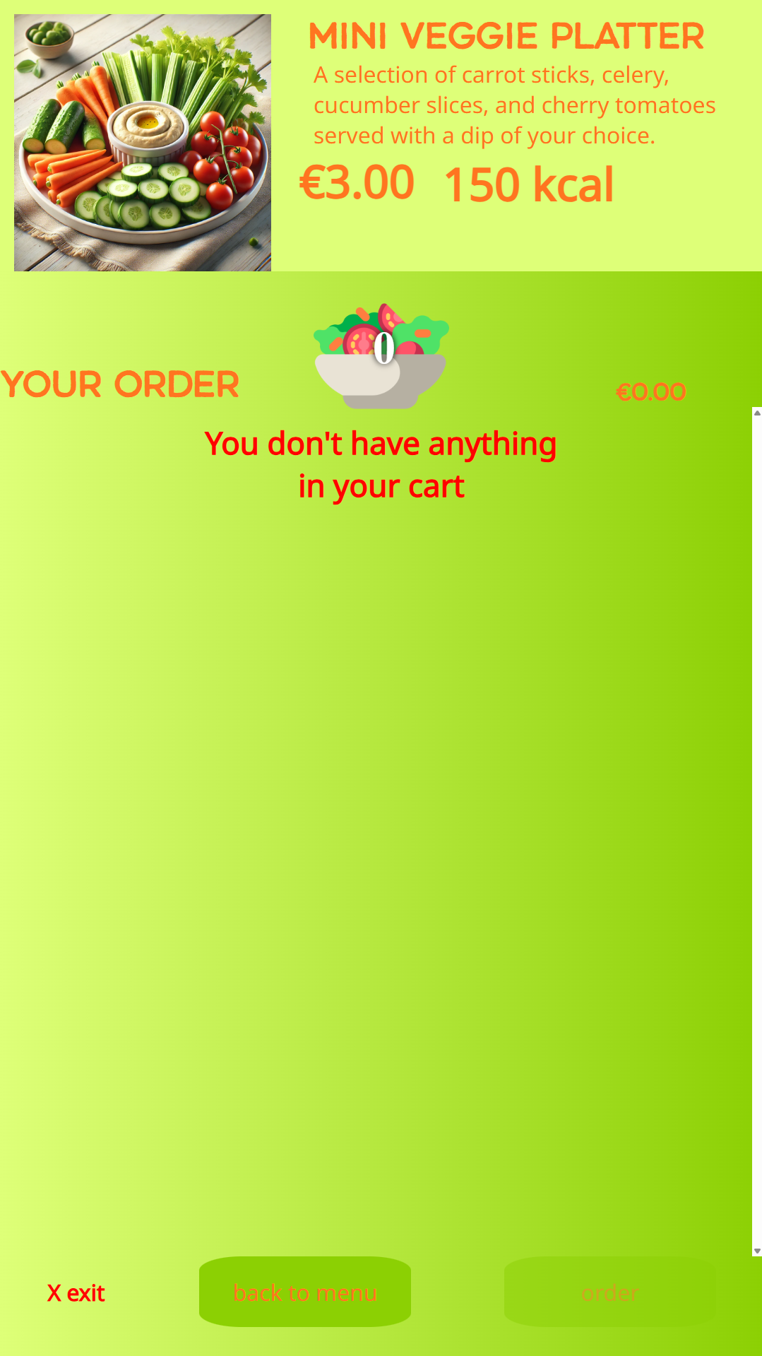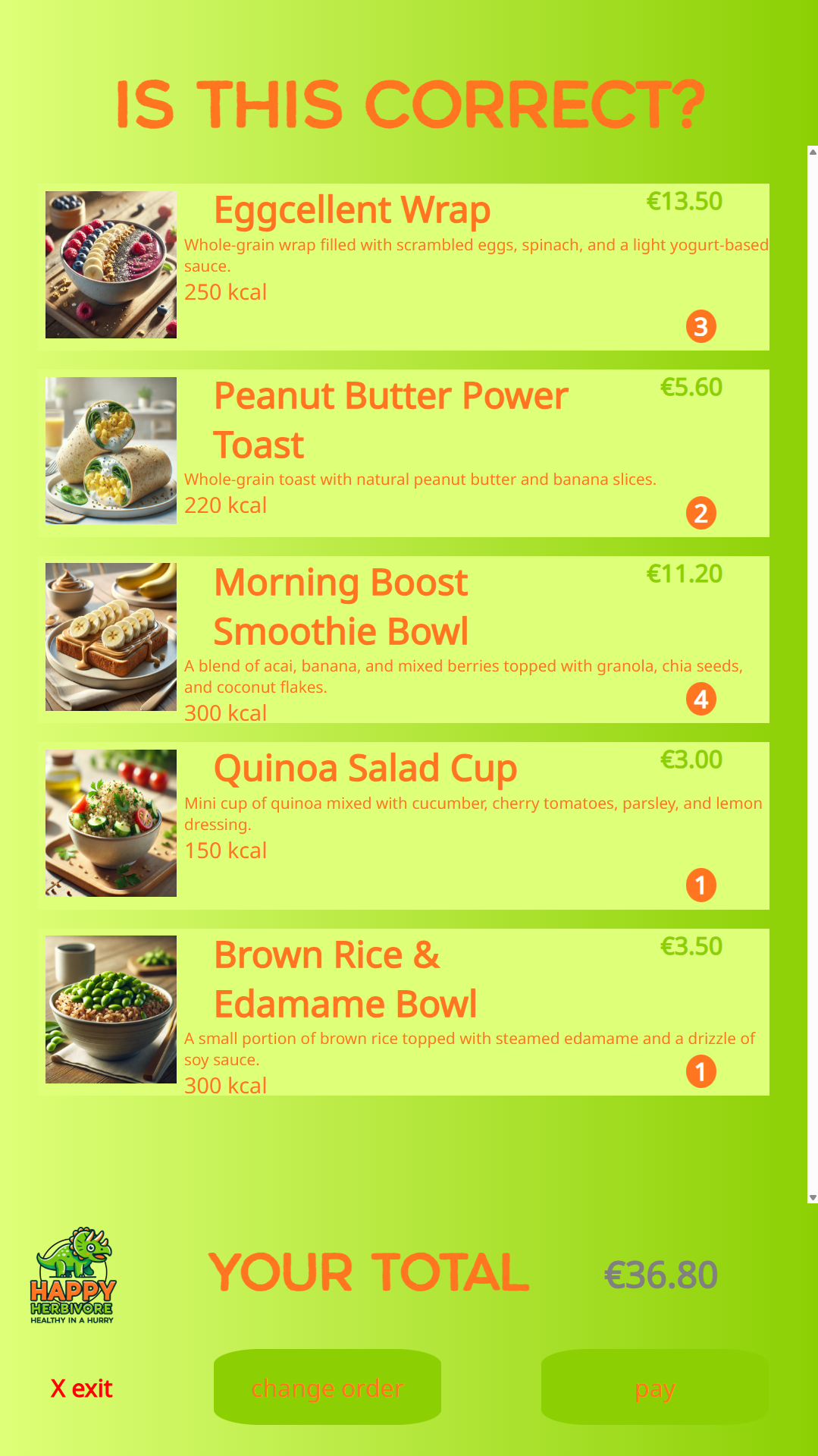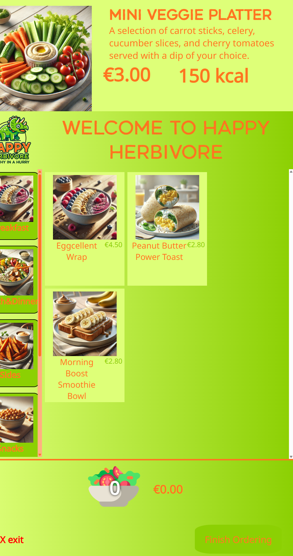 Voor deze opdracht moest ik een kioskapplicatie maken voor een restaurant genaamd Happy Herbivore, bedacht door Harry Harper. De kiosk is bedoeld voor klanten die zelf een bestelling willen plaatsen in het restaurant, zonder hulp van personeel.